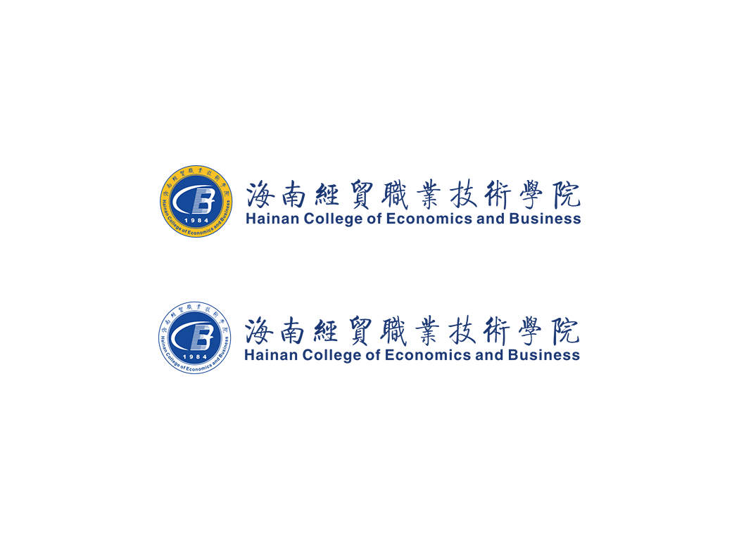 学校标识为双圆套圆形微标,中间底色为钻石宝蓝色,由学校英文缩写中的“HCEB”组合而成的雄鹰在海天之间朝翔团,寓意学校高远瞩、快速发展,体现了学校的名称地理位置,下方为”1984″字样,代表学校建校时间,外环底色为金黄色,上方为黑色的中文校名,下方为英文校名。