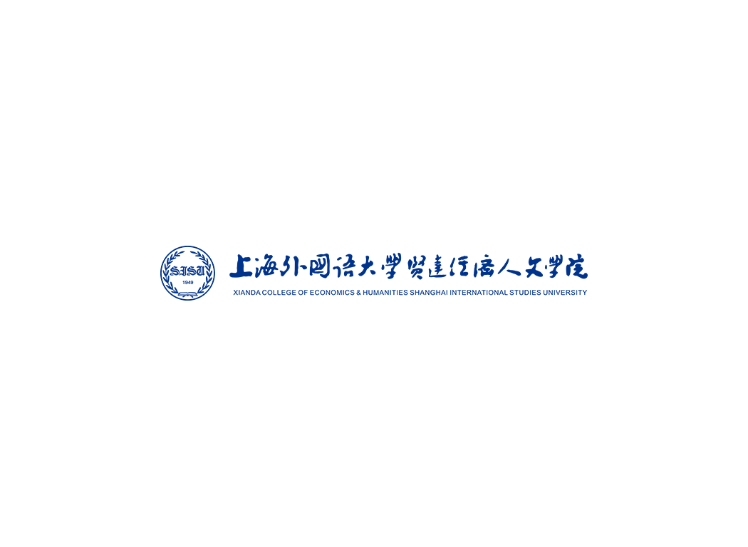 上海外国语大学贤达经济人文学院校徽整体采用上海外国语大学校徽设计方案;校徽以展开的书本及茁壮的橄榄枝为主体构型,书本象征对学问与真理的求索,橄榄枝象征对和平与友谊的向往。两者衬托并环绕着代表学校举办方上海外国语大学的校名英译缩写(SISU)、建校时间(1949 年)。