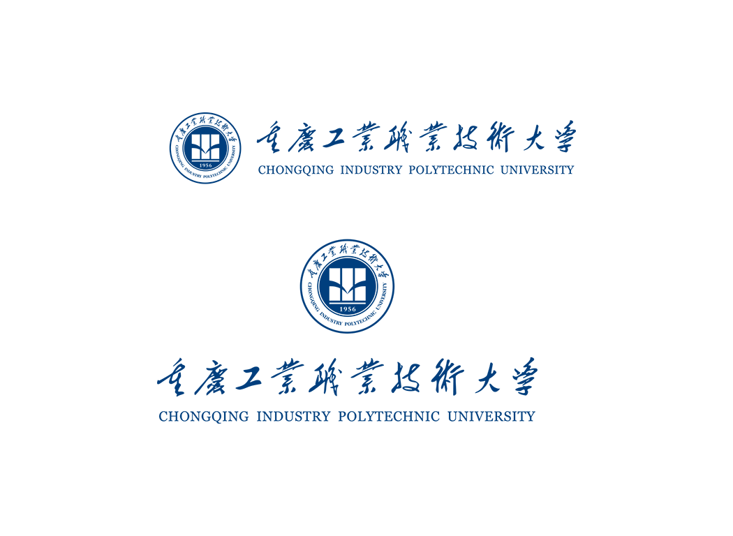 3.毛体中文字和英文校名。“重庆工业职业技术大学”采用草体字,流畅、大气、神采飘逸,与下半部标准英文校名相辉映,寓意着学校开放性和国际性的办学思路,学校将融于现代国际潮流。