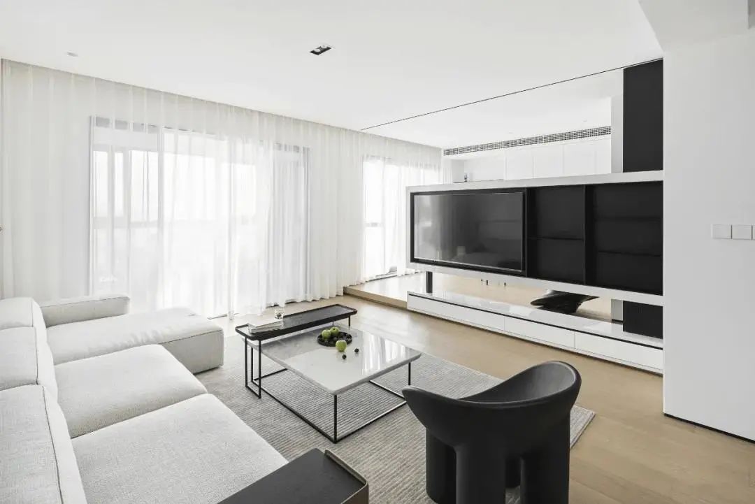 装修时需首先摆放沙发,确定好沙发位置后,电视机的位置也就轻松确定了,可以根据沙发的高低确定壁挂电视高低,这样可以优化观影体验。